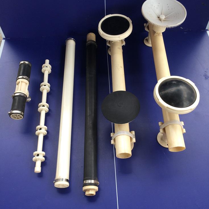 產(chǎn)品特點:獨特的上、下管夾層插連接方式,*大限度的方便了安裝工作,單只曝氣器不需要切斷供氣管道即可實現(xiàn)自由拆裝。整體結(jié)構(gòu)設(shè)計堅固,避免了多次搬運過程中的損壞。上管夾的氣流出口處設(shè)有凹凸等分,規(guī)避了堆積的濾料層對膜片張幅的影響。